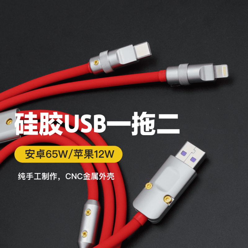 New GC two in one 5A ultra fast charging data line flash charging Apple Android mobile phone Huawei one to two charging silica gel