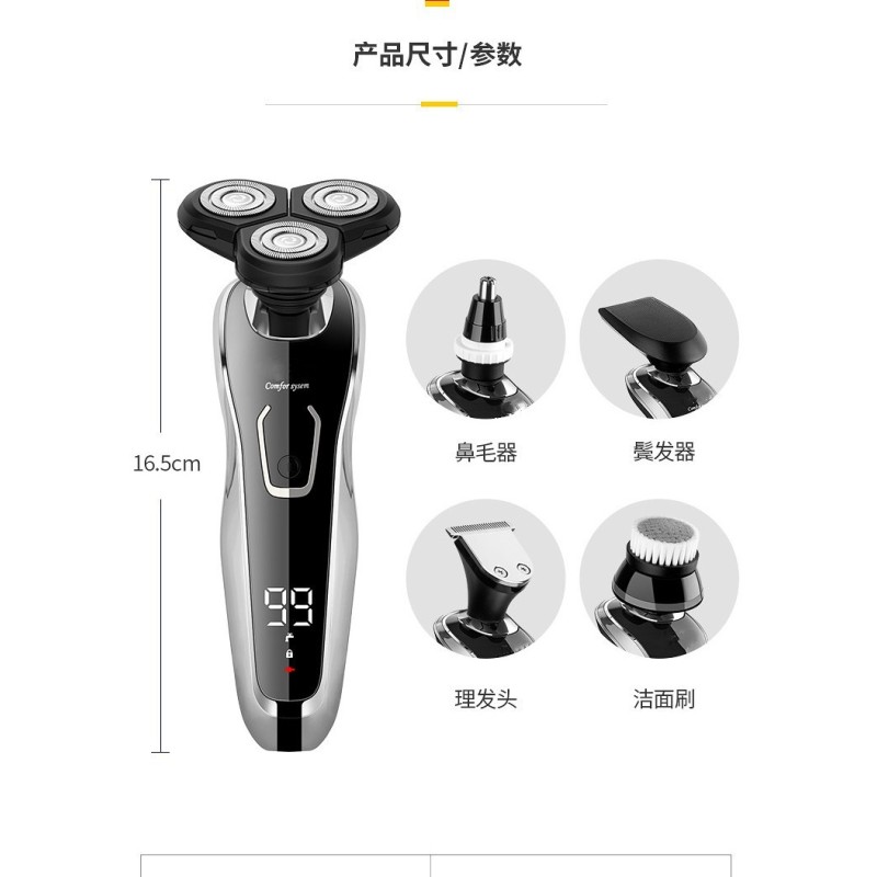 Electric shaver 4D digital display rechargeable shaver multifunctional men's three head shaver water washing