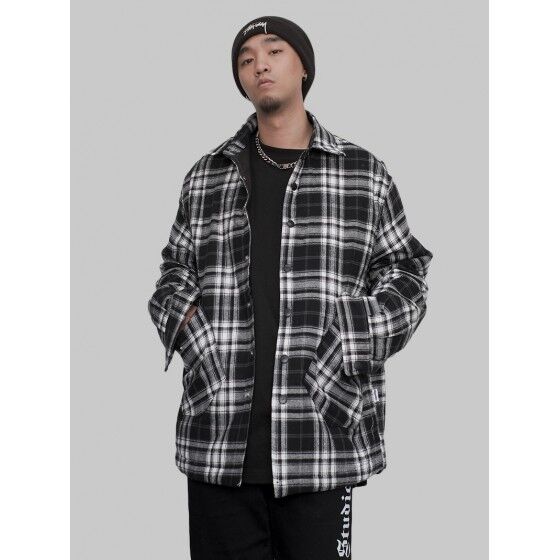 Flannel thickened cotton sandwiched winter leather Plaid cotton jacket men's high street hip hop tide brand cotton jacket ins