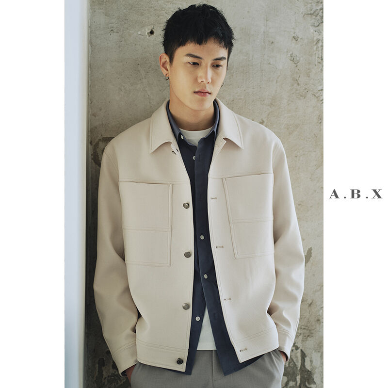 Spring new imported hollow yarn with wrinkles short tooling jacket men's casual lapel spring and autumn men's jacket